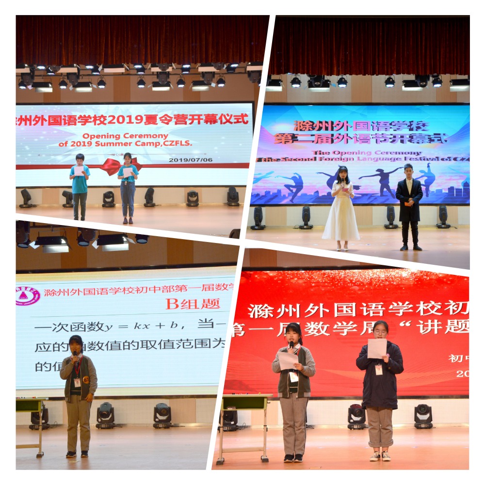 滁州外国语学校的校园活动很多,第二课堂、社团活动、社会综合实践活动,以及富有学校特色的“六大节日”系列活动等,大大小小的各种比赛也是每月甚至每周就举行。主持、导演、排练节目......在很多比赛和活动中都能看到我的身影。