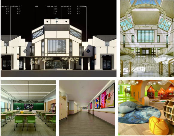 教学区:装修精美、设施先进。建有”“STEAM”活动中心、舞蹈房、艺术教室、报告厅、图书馆及学生活动室。