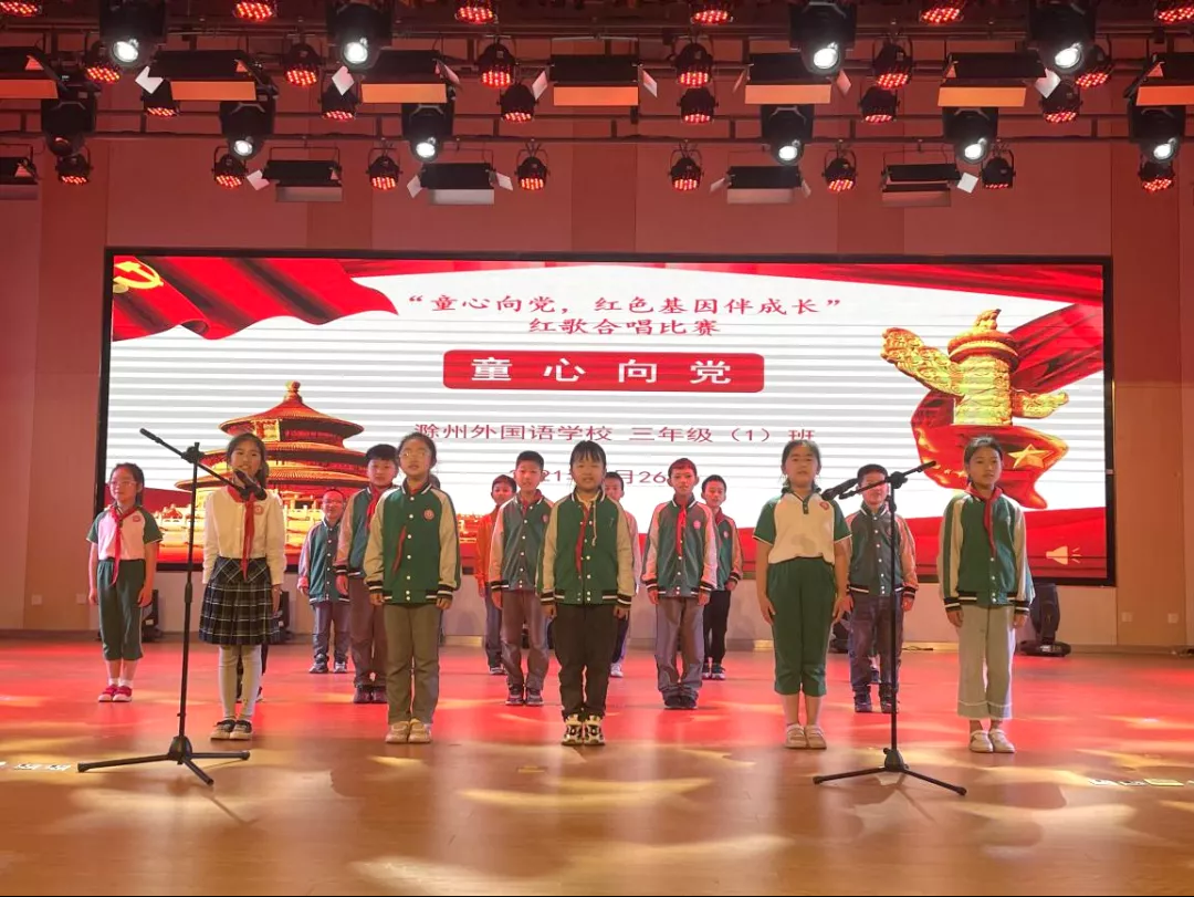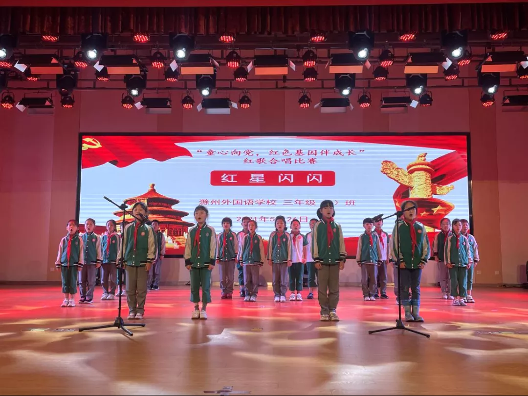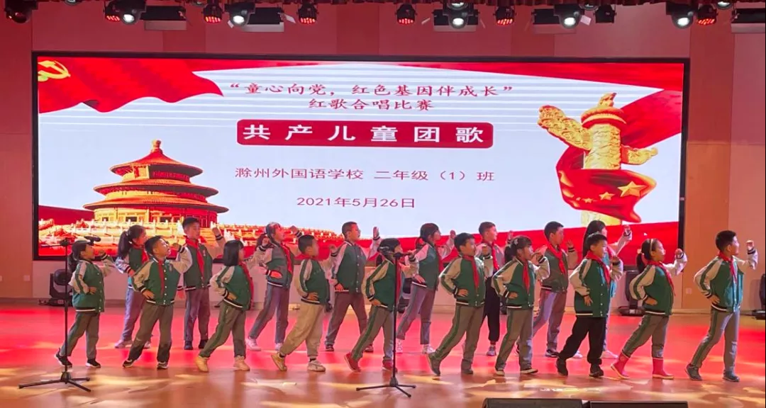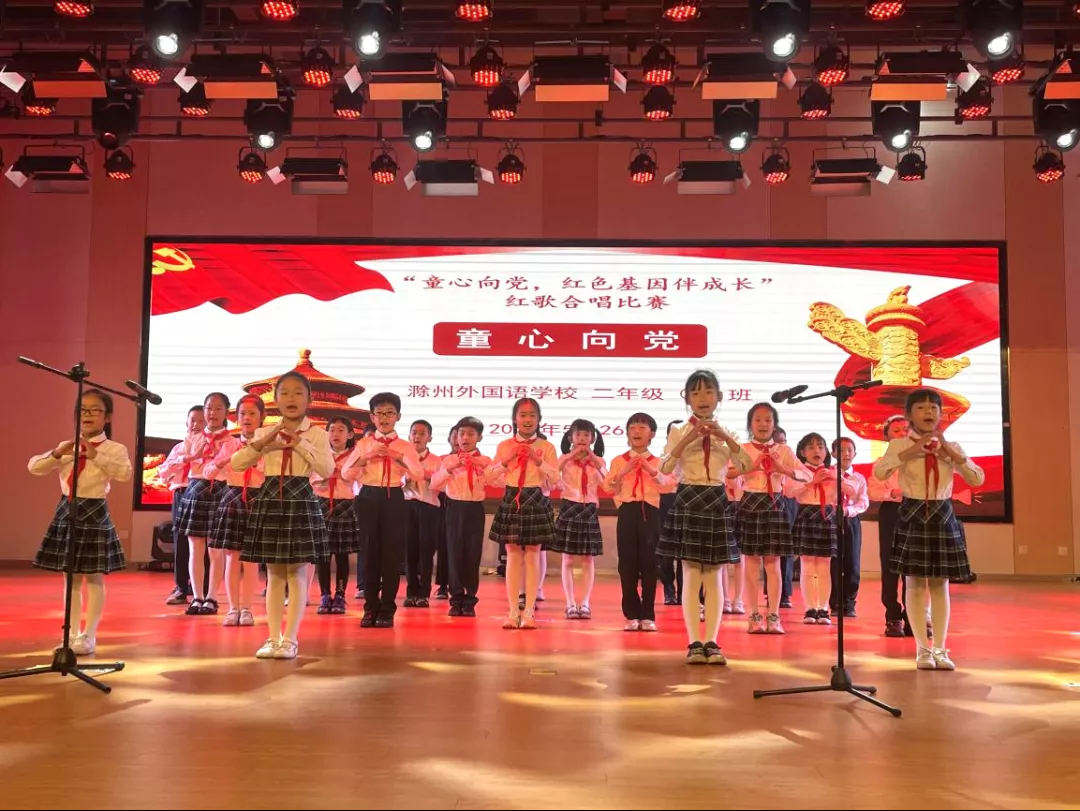 红歌代代传,歌声唱祖国。为构建和谐校园,丰富学生的校园生活,培养学生积极向上、乐观进取的精神,滁州外国语学校小学部于5月26日举办“童心向党,红色基因伴成长——献礼建党100周年红歌合唱大赛”,唱响爱国主旋律。