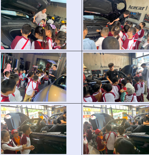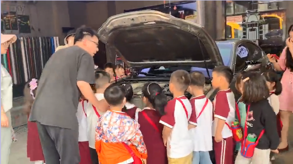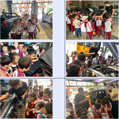 哎呦爸爸作为一位资深汽车保养大师,对于各种品牌、风格的汽车了如指掌,今天特意提前安排了轿车、跑车、新能源汽车三款市场比较普及的汽车类型,供小朋友们参观探索。然后再分别从他们的外观差异及内部构造做了深度的解析,孩子们认真聆听、仔细观察。
