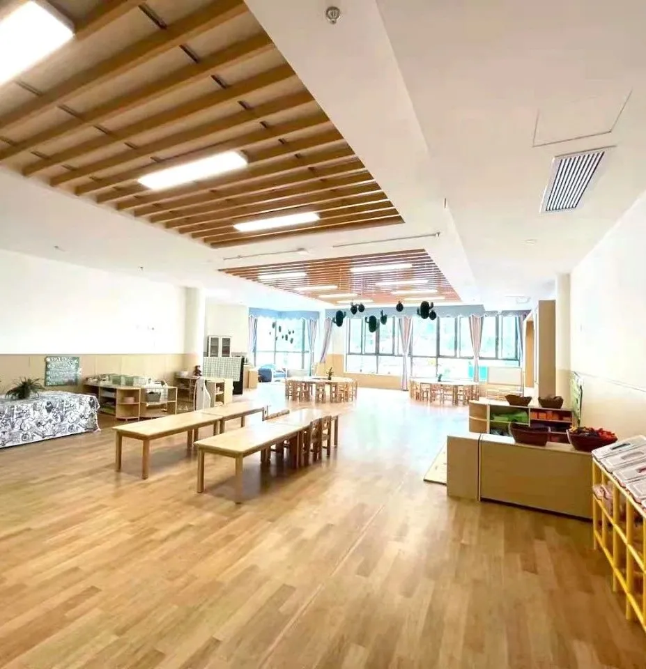 校领导介绍说:一是我们全部选用的是环保材料,连基层板都是E0级兔宝宝板材;二是充分考虑莫大师设计的学校建筑特殊性,在外立面施工的同时,在4月底就已经完成了室内教室部分的装修工程。