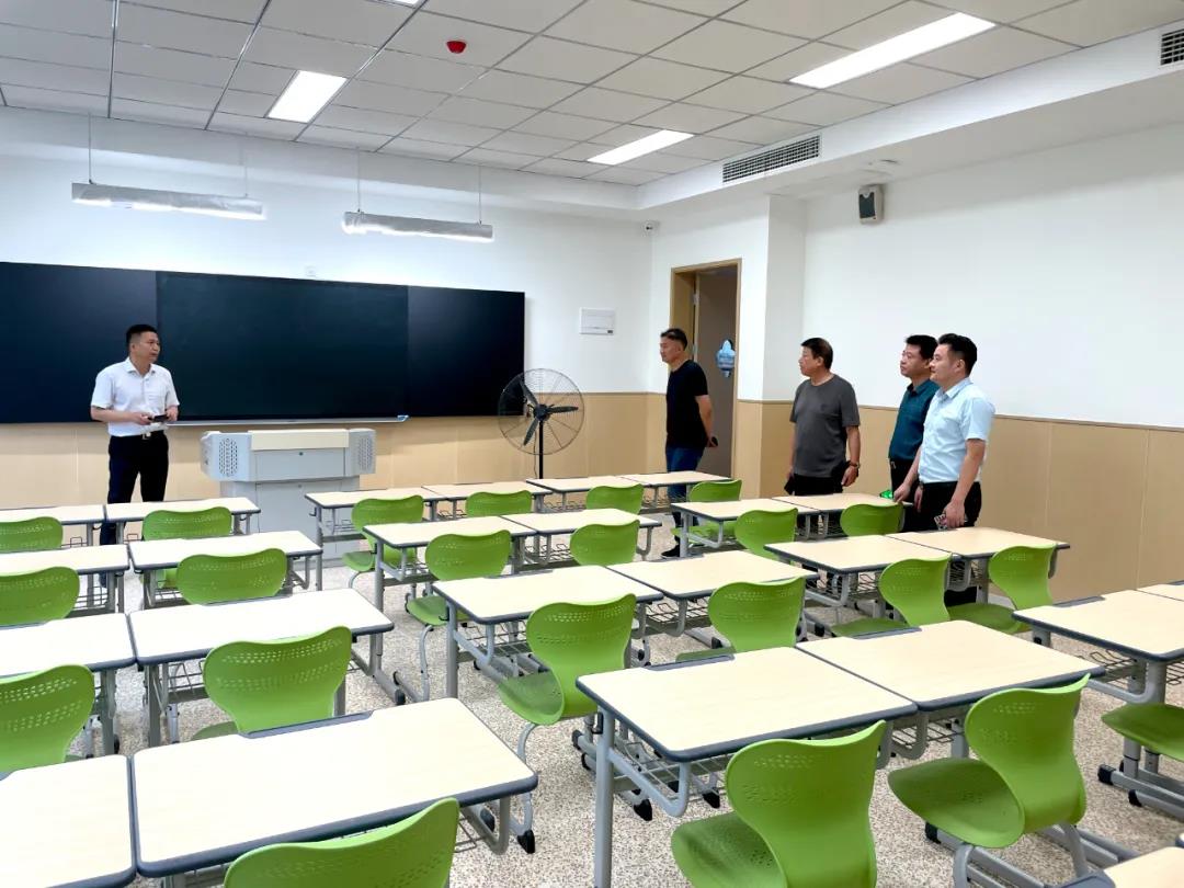 2021年8月18日下午,南谯区教体局职成科陶玉刚科长、夏小明主任、基教科马红梅科长、督导办李思亮主任、薛为刚主任等一行人莅临滁州外国语学校,对我校新校区投入使用及开学筹备工作进行视察指导。