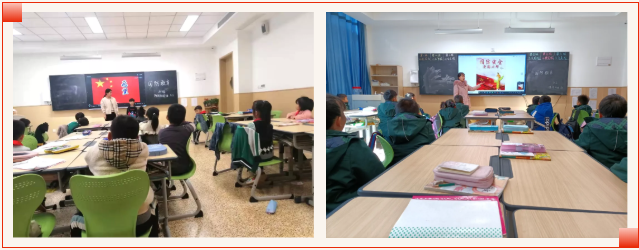 一年级班会中,老师们向孩子们讲解国旗、国徽、国歌的相关知识,让孩子们知道,国旗、国徽、国歌是我们国家的象征和尊严,热爱祖国从爱护国旗、国徽、学唱国歌开始。