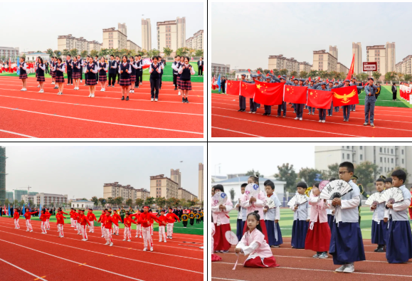 鲜艳的国旗在前方引路,国旗方阵、校旗方阵、会旗方阵、彩旗方阵、鲜花方阵及班级、家长、裁判方阵依次入场,各个方阵用巧妙的构思、创意的道具、精彩的展示,定格异彩纷呈的瞬间,彰显朝气蓬勃的运动风采。