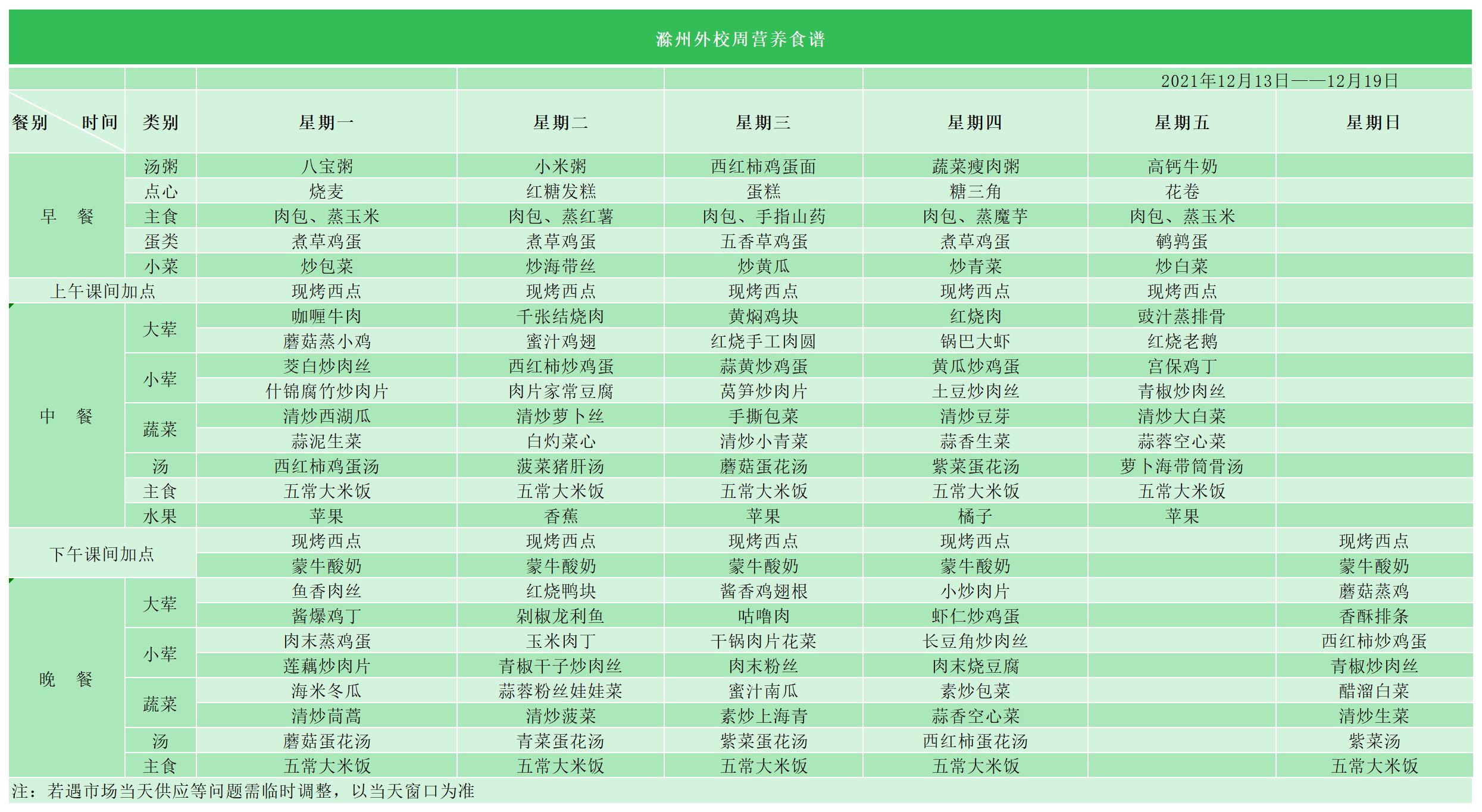 滁州外国语学校菜谱公示(2021.12.13-12.19)