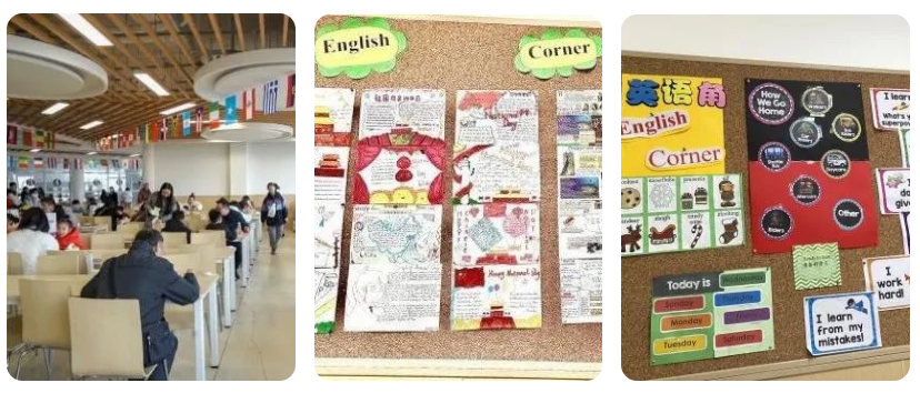 不一样的课外活动:除了常规的英语课堂,我校在第二课堂、英语课外活动、环境布置和外语氛围创建等方面努力创新,为学生提供母语化学习环境的同时,极力创建外语语言文化氛围。