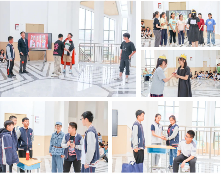 比赛分为初赛和决赛两轮。初赛海选在各个班级内进行。经过层层选拔,7组选手脱颖而出。5月31日下午,我校初中生英语课本剧比赛决赛在教学楼三楼大厅举行。评委由王红燕、张超和马亚男三位老师组成。他们分别从英语语音语调、舞台表现、道具服化等多方面对选手们进行打分。