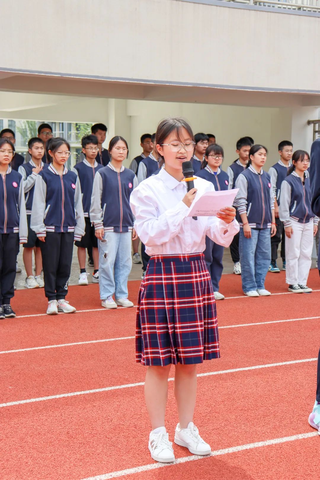最后,全体师生为初三学子呐喊助威:中考加油!中考必胜!