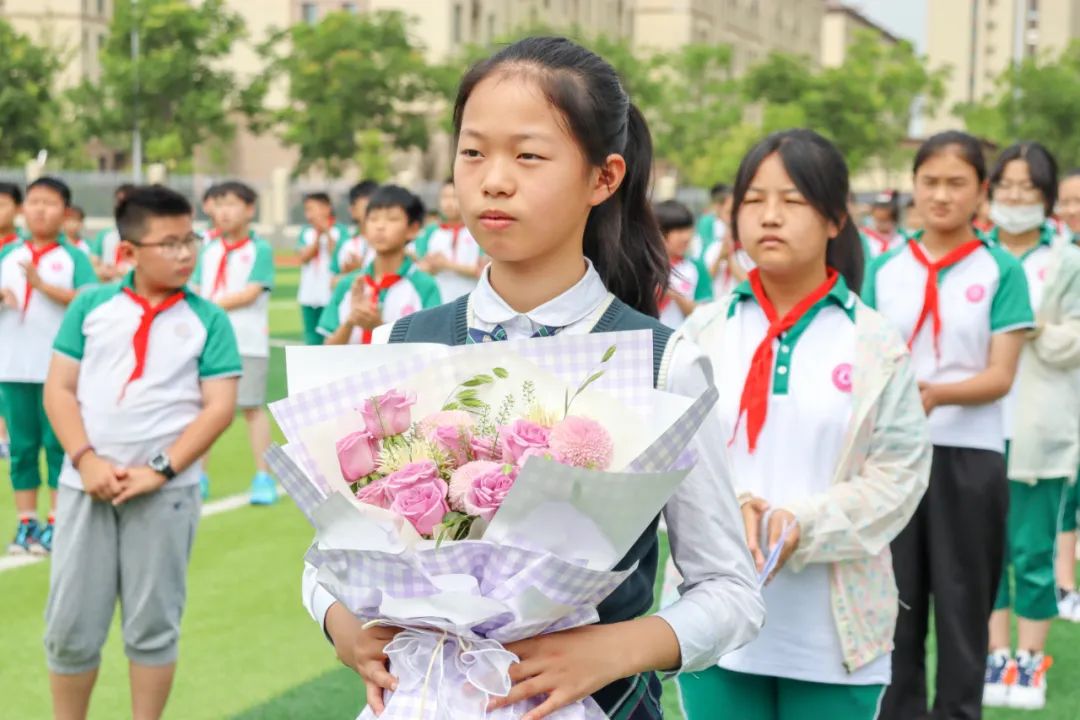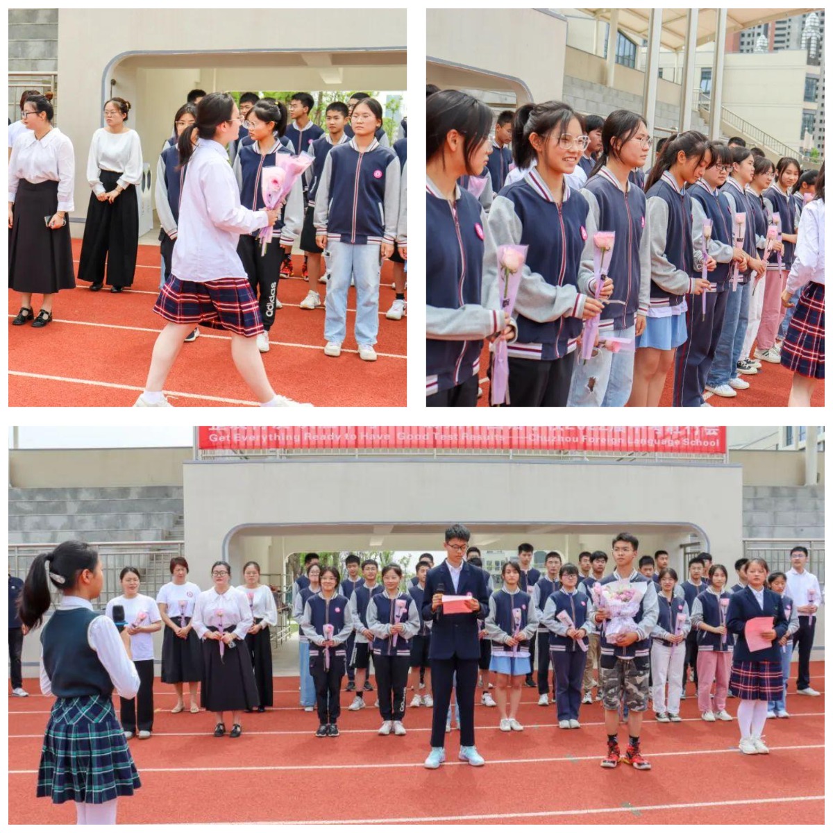 小学部和初中部的学生代表们为初三学子和辛勤耕耘的初三老师们送上代表殷殷祝福的献花。