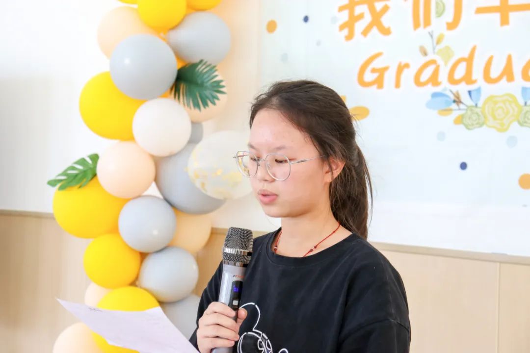 毕业典礼在六年级优秀学生代表贾静雯同学的发言中拉开了序幕,贾静雯同学回顾了自己到滁州外国语学校这几年的成长、发展,表达了对老师们的这几年教育的感恩之情,同时也希望同学情谊永在。