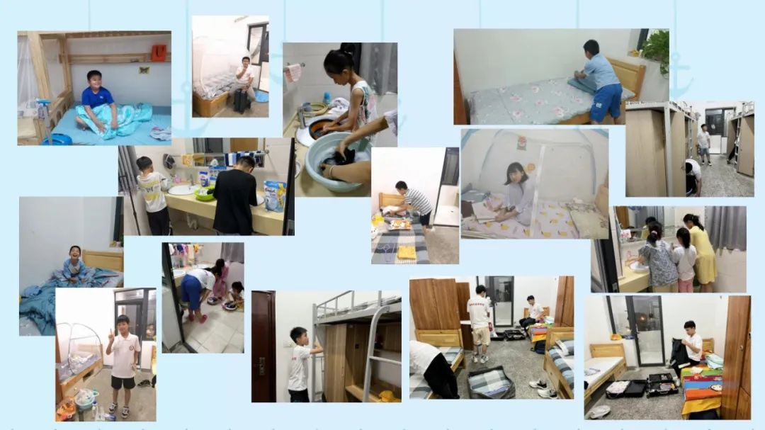 宿舍宽敞明亮,孩子们拥有足够的生活空间及储藏空间;宿舍提供24小时热水,配备空调、独立卫浴、阳台、衣柜、桌椅、驱蚊设备等。白班及夜班生活老师全程照顾孩子的生活起居,全天候指导与管理,帮助孩子养成良好的生活习惯,保证孩子的安全。很多第一次离开爸爸妈妈的孩子都学会了铺床、洗衣、洗漱,自理能力得到培养,自立意识得以提升!