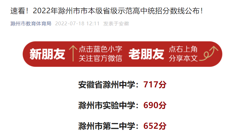2022年7月18日,滁州市教育体育局公布了市本级省示范高中的分数线:从三年前的区第六到独占鳌头,一所新建学校是如何脱颖而出、“弯道超越”、迅速崛起的呢?