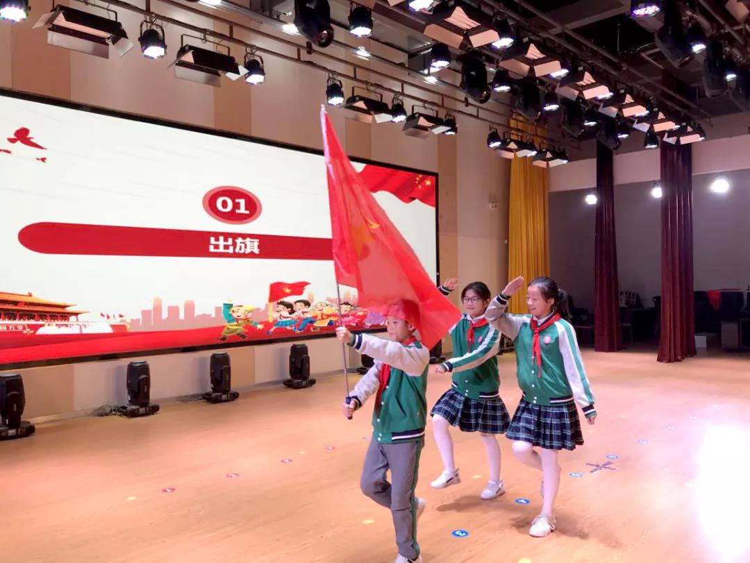 在雄壮有力的出旗曲中,少先队旗手与护旗手们迈着整齐的步伐,精神抖擞地进行着庄严的出旗仪式,少先队入队仪式由此拉开帷幕。仪式上,五年级的老队员们为新队员佩戴了红领巾,新队员在鲜艳的队旗下庄严宣誓。一(1)中队的蒋民西同学作为新队员代表发言,表达了入队后的喜悦心情,也表示以后要用实际行动为红领巾增光添彩,争做一名优秀的少先队员!学部校长向新队员们表示祝贺,并提出了争做一名优秀的少先队员的希望和要求。活动最后大队辅导员为大队委成员颁发聘书,希望他们能够为其他队员做出榜样。