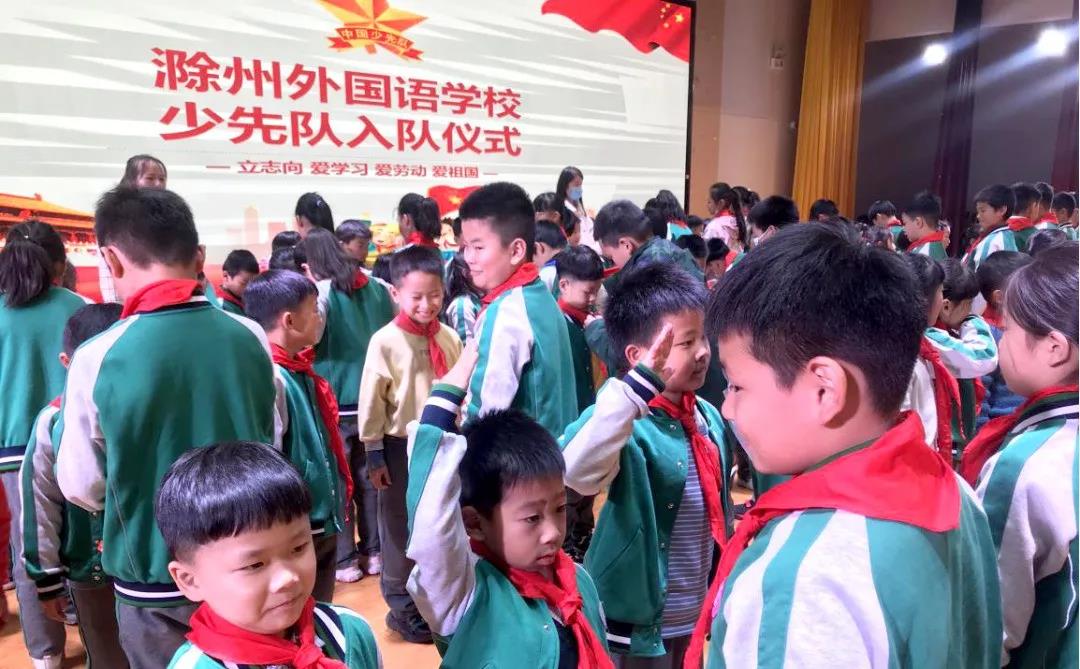 “我们是共产主义接班人!”为提升少先队的凝聚力和影响力,激发少先队员们对少先队组织的荣誉感、自豪感和使命感,进一步提高少先队组织在学校教育中的重要地位,增强广大少先队员的组织意识和集体荣誉感。11月2日下午,滁州外国语学校小学部举办了少先队新队员入队仪式活动,经过入学两个月的初步训练和培养,88名一年级学生光荣地加入了中国少年先锋队组织。