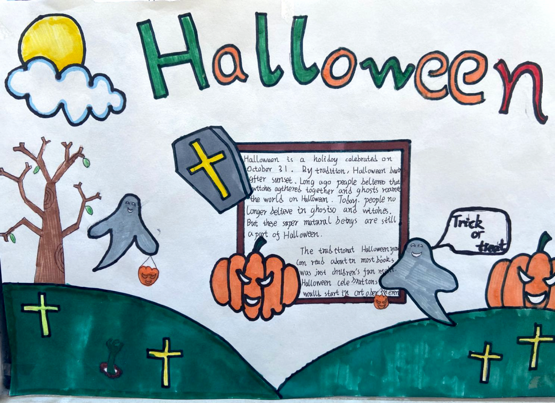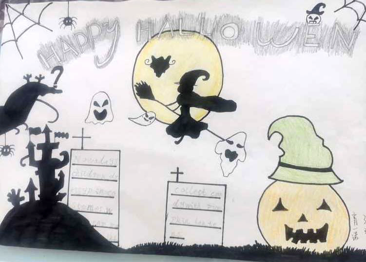 当然我们三四年级的同学也同样出彩,英语手抄报的制作也是充满了奇思妙想。他们以“Halloween”为主题,作品丰富多彩。