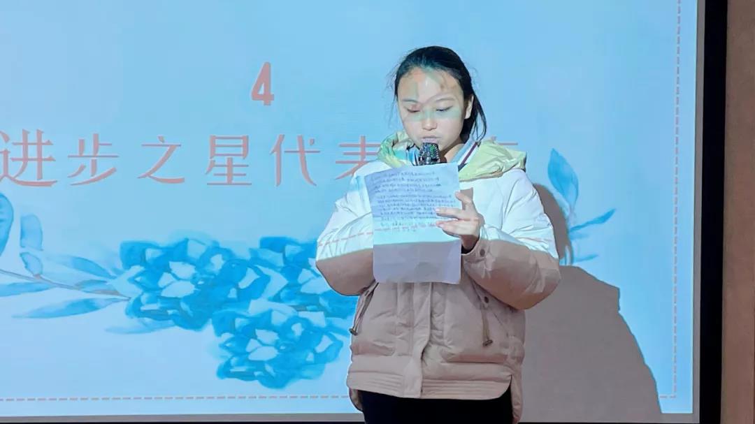 紧接着迎来了第二轮颁奖,方临梅主任宣读了“优秀之星”和“学习达人”的获奖名单,然后由孙立新校长和杨晓莉校长为获奖学生颁奖,全体师生们用掌声向在本次期中考试中获得奖励的同学表示热烈的祝贺。优秀之星学生代表邵依同学为大家分享宝贵的学习经验。 最后,杨晓莉校长作总结发言,杨校表示经过全体师生的励精图治、不懈努力,期中考试取得圆满成功,对同学们取得的可喜成绩表示祝贺;另外杨校还从自信、学法、领悟等几方面对本次期中考试作总结,并对全体学生提出希望,希望全体学生以这次表彰大会为契机,努力拼搏,再创佳绩!作为初中生,
