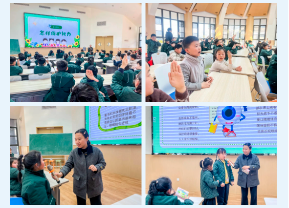 怎样保护我们的视力?孩子们争先恐后的抢答:要坐姿端正、少看手机和电视、多吃胡萝卜和蓝莓、多锻炼身体、认真做眼保健操……孩子们稚嫩的声音回荡在整个课堂。