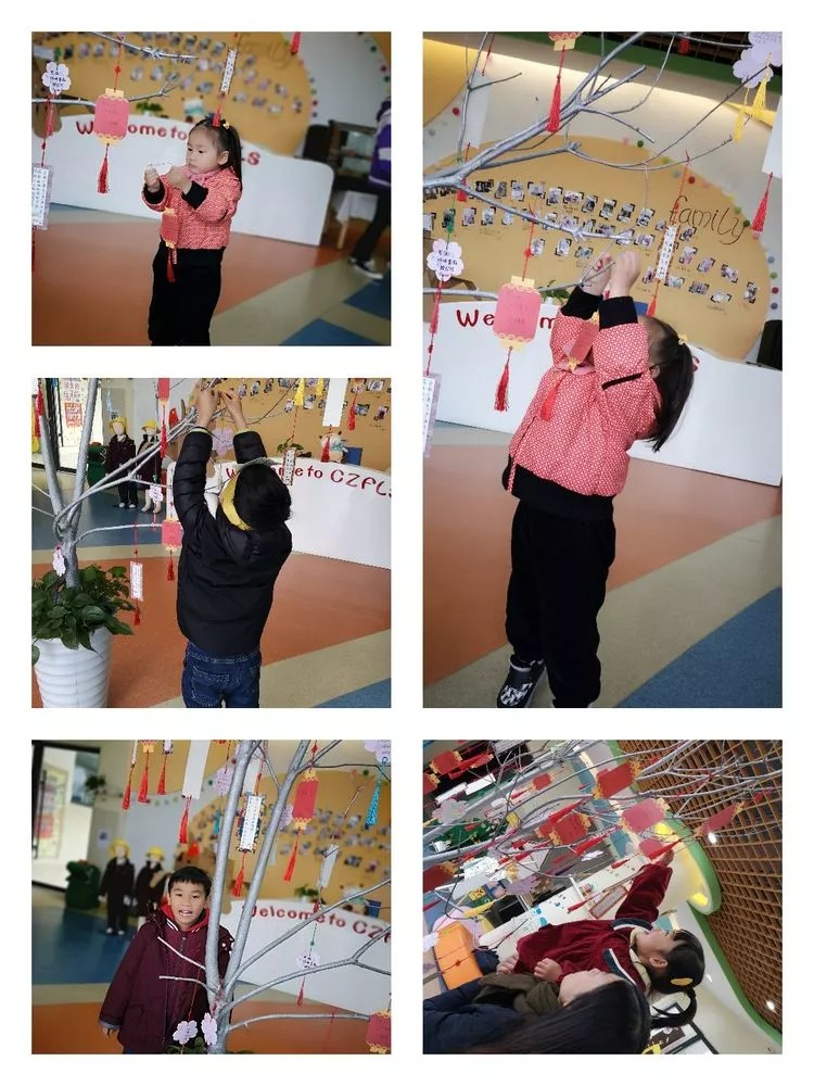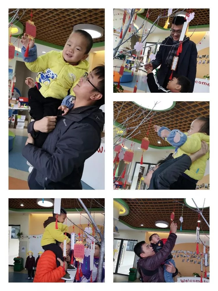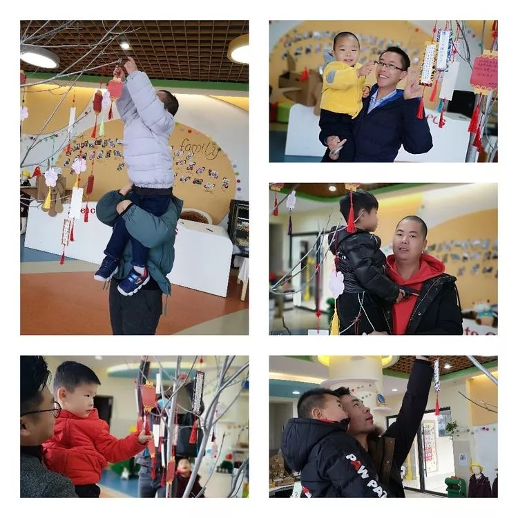 我和老爸一起挂福带,我要挂的最高,挂到树顶去