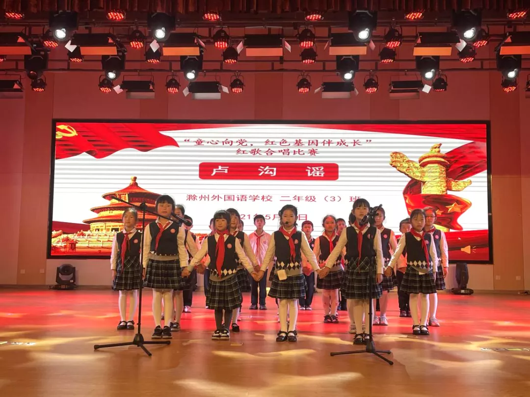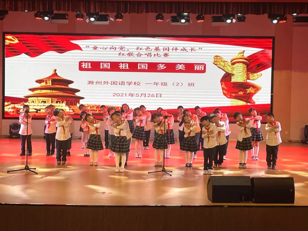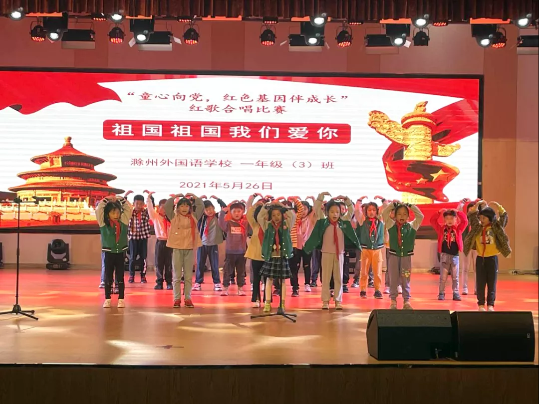 红歌代代传,歌声唱祖国。为构建和谐校园,丰富学生的校园生活,培养学生积极向上、乐观进取的精神,滁州外国语学校小学部于5月26日举办“童心向党,红色基因伴成长——献礼建党100周年红歌合唱大赛”,唱响爱国主旋律。