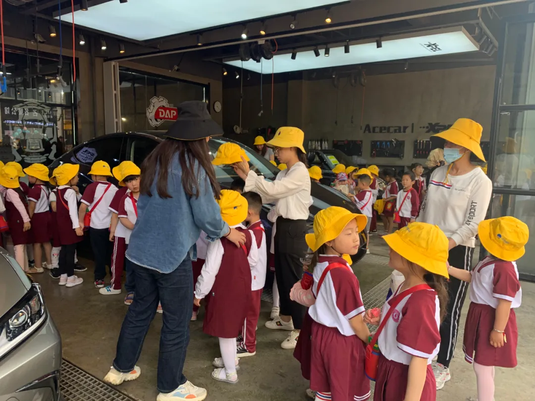 哎呦爸爸作为一位资深汽车保养大师,对于各种品牌、风格的汽车了如指掌,今天特意提前安排了轿车、跑车、新能源汽车三款市场比较普及的汽车类型,供小朋友们参观探索。然后再分别从他们的外观差异及内部构造做了深度的解析,孩子们认真聆听、仔细观察。