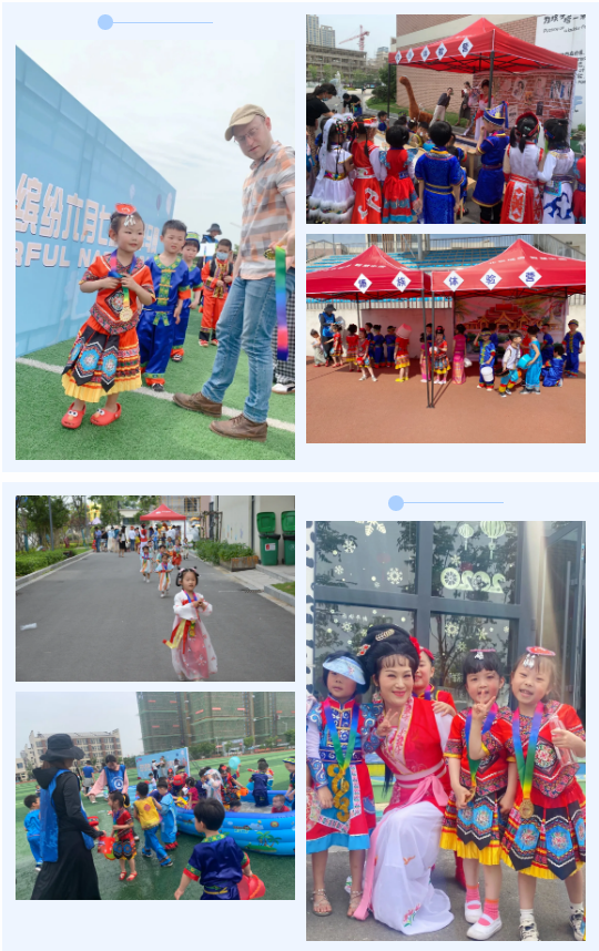 孩子们全程走完400米,分别在七个民族助力加油站获得荣誉勋章卡片一张,再凭手中卡片感受不同民族体验营带来的多民族文化体验。本次活动高潮部分是最后的傣族泼水环节,还有户外篮球场的踩水坑活动。通过互动环节,让孩子们从中享受这场文化体验之旅,使孩子们在活动中尽情体验与同伴、老师一起过节的乐趣。