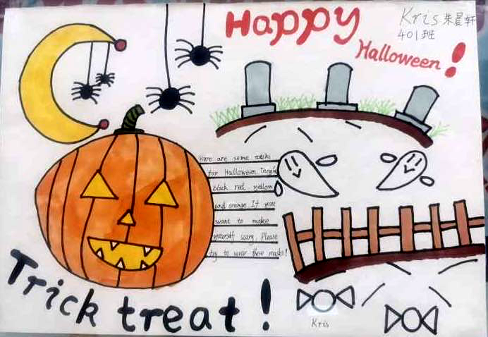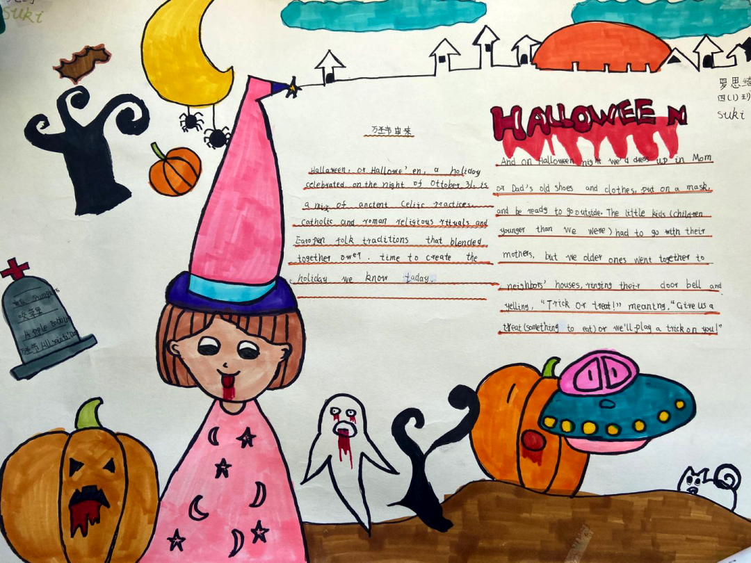当然我们三四年级的同学也同样出彩,英语手抄报的制作也是充满了奇思妙想。他们以“Halloween”为主题,作品丰富多彩。